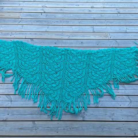 Kaunis vihreä virkattu kolmio shaalihuivi
