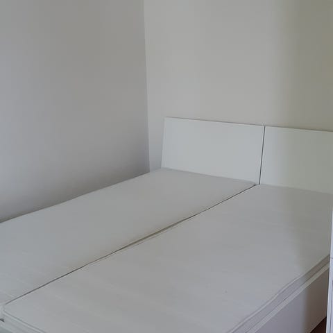 Valkoiseksi maalattu,puinen,hyväkuntoinen parisängyn runko 160x200 cm
