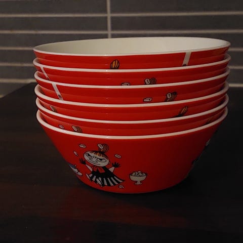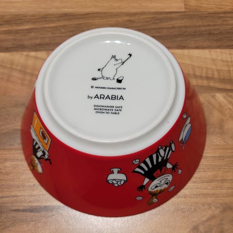 Myynnissä Arabian Little My astiasto muki ja kulho. Astiaston väri on punainen ja kuvioinnissa on Pikku Myy. Kunto on moitteeton.