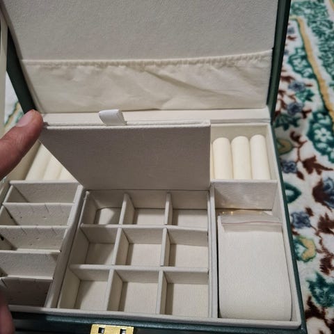 Mikäli kansipeilin nostaa syrjään, vapautuu yksi suorakaiteen mallinen lokero lisää.