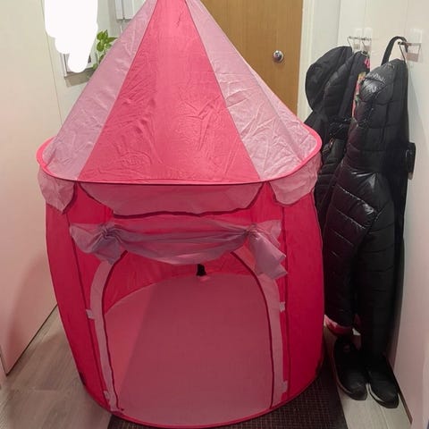 2 kertaa koottu mummola käytössä hieno prinsessa teltta, yhdestä nurkasta alhaalta pikkasen revennyt ei näy jos ei tiedä.
