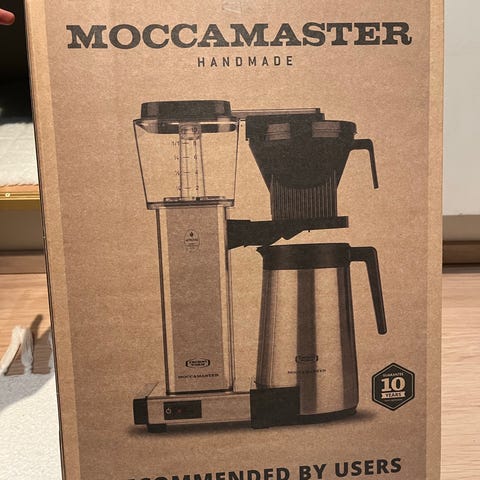 Technivorm Moccamaster kahvinkeitin, jossa on metallinen runko ja lasinen kannu. Kaikki osat tallella. Laitteessa on kaksi erillistä kytkintä. Ostettu uutena 1.9.2025, joten takuuta voimassa liki viisi vuotta. Pahvilaatikkoa ei ole.