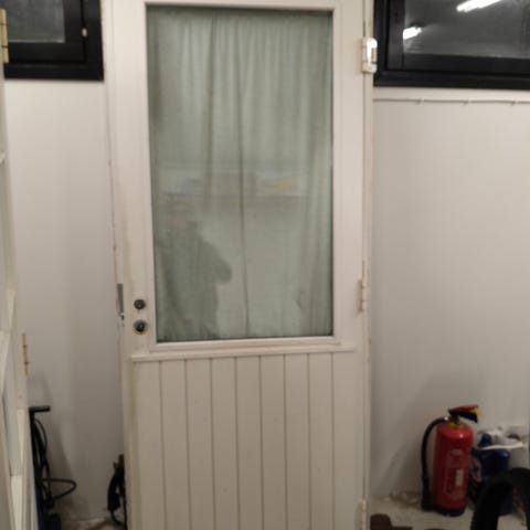 Lämpimän varaston ovi ja karmit, kynnys puuttuu.