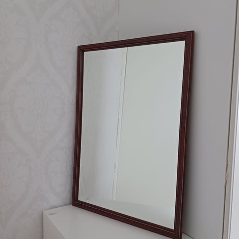 Iso valkoinen peili, jossa on yksinkertainen muotoilu. Sopii sisäkäyttöön, esimerkiksi makuuhuoneeseen tai eteiseen. Peilin koko noin suunnilleen on leveys 72 ja korkeus 162cm. Vain nouto.