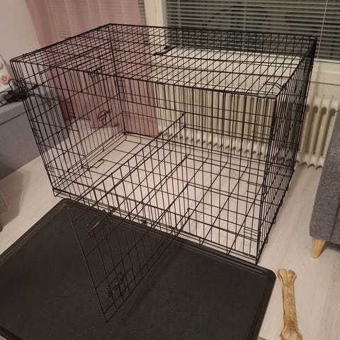 Kerran haettu koira Tuusulasta. Täysin uuden veroinen koiran kuljetus häkki. Maksoi liikkeessä 108€.