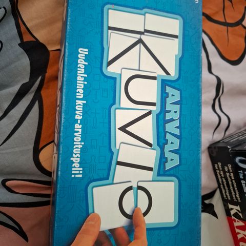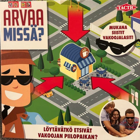 Valitettavasti kaksi pelinappula puuttuu, mutta se ei estä pelin pelaamista. Myös kannessa hieman käytön jälkiä.Mukana tavallinen noppa ja värinoppa.