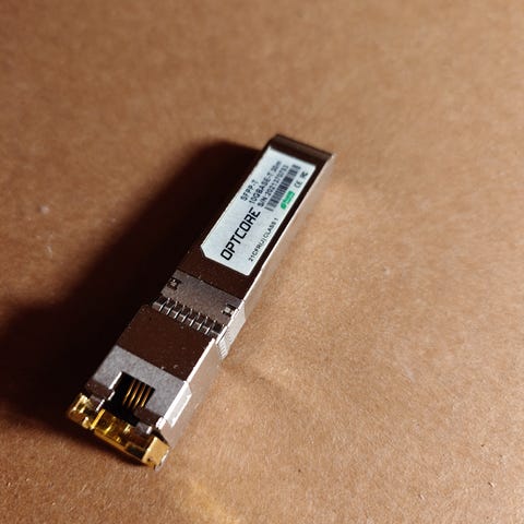 Mukaan tulee myös 30m kuitu kaapelia joissa SFP liitin, nopeus 10 Gbit