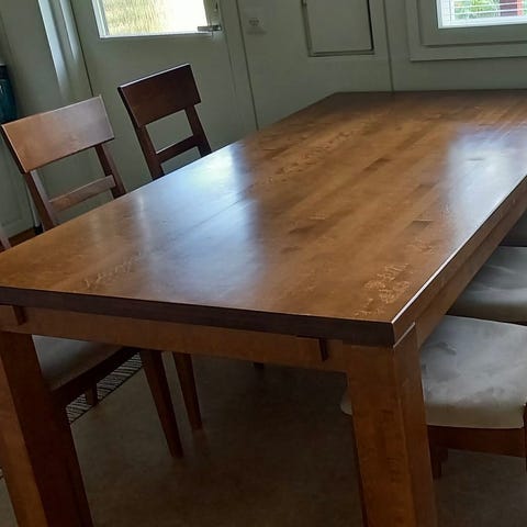 Myydään hyväkuntoinen ja laadukas Pohjanmaan kalusteen ruokailuryhmä. Saa tulla katsomaan paikan päälle!😊 140x140cm ja kuusi tuolia tulee mukaan. Kannen päälle teetty lasi, kuuluu kauppaan.