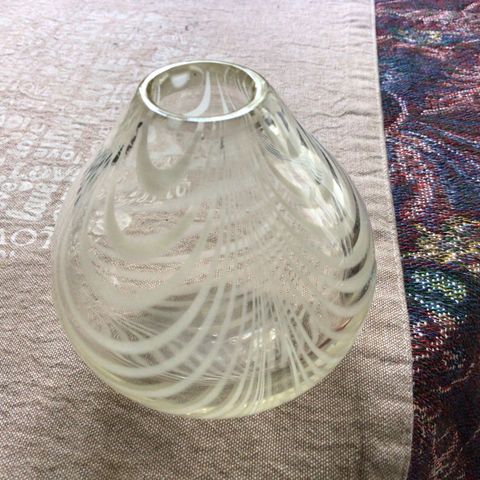 Myydään kaunis käsin puhallettu filigraanimaljakko, mahdollisesti pohjoismaista studiolasia (Hadeland-tyylinen).
