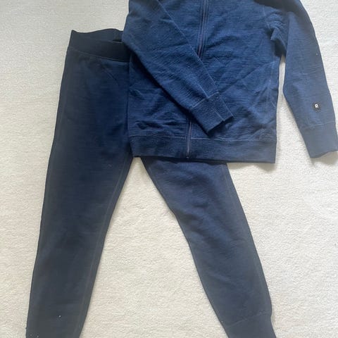 Reiman merinovillainen takki koko 128 unisex-mallille, väriltään turkoosi. Valmistettu villa 80%, polyesteri 20%. Myynnissä myös samankokoiset villahousut. Nouto Hallila, Tampere tai Toridiili.