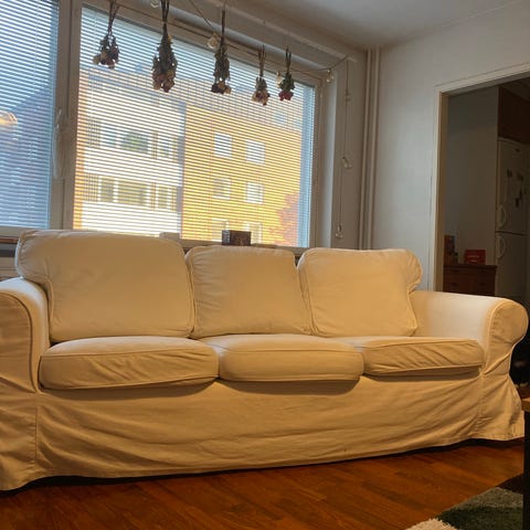 Tästä asiallisessa kunnossa oleva 2 hengen sohva uuteen kotiin. Ehjät ja puhtaat päälliset. Ei lemmikkejä taloudessa.