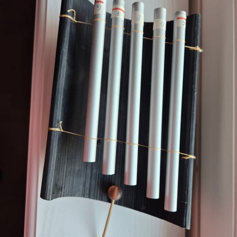 Kaunisääninen palakellopeli. G pentatoninen. Sävelet d1 e1 g1 a1 h1 d2 e2. Kaksi mallettia.