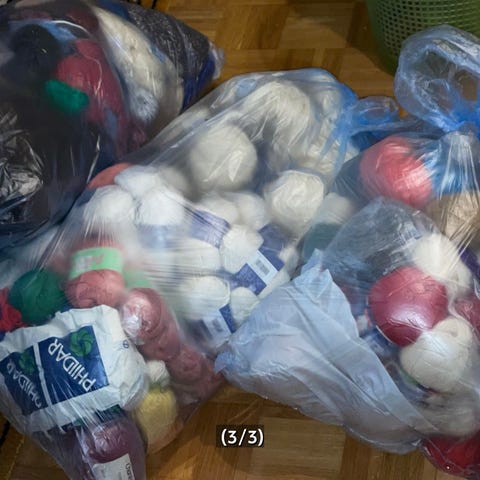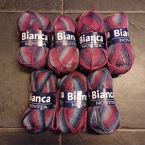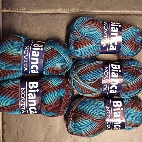 Huurre villalanka 6 kerää vihreä väri. Viisi uutta kerää ja yksi, josta köytetty muutaman metrin verran lankaa.