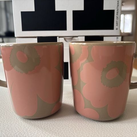 Uudet Marimekko mukit 4 kpl, 2,5 dl, terra-vaal.pun. Oiva Unikko. Kaapin viimeiset nyt myyntiin , yht 35e sis mahdoll pkt