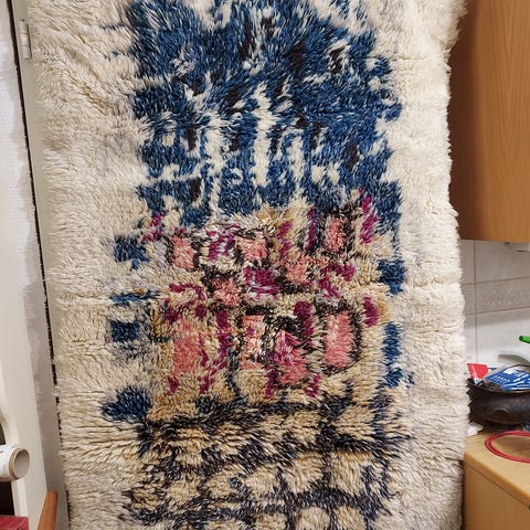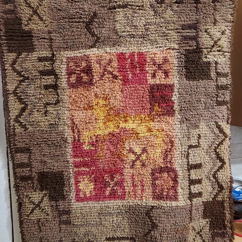 Hyväkuntoinen retro ryijy etsii uutta kotia. Ryijy on puhdas eikä ole hajuja. Koko 115x163 cm.