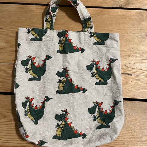 Kuvanmukaiset hyväkuntoiset lasten kangaskassit leluille, 4 erikokoista.