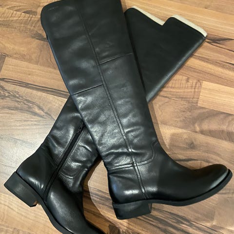 Mustat nahkasaappaat, paksuhko pohja. Koko 38, vastaa mielestäni kokoaan. Käytetyt, mutta edelleen hyvässä kunnossa