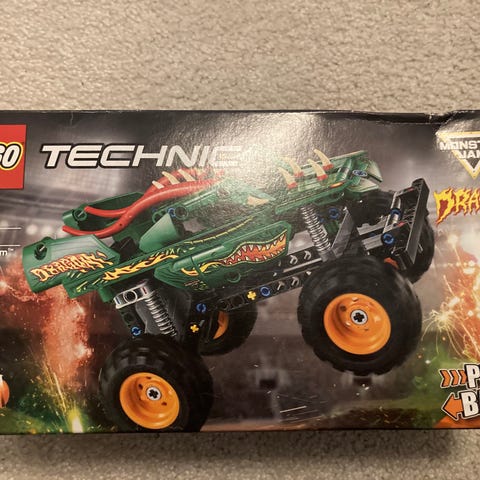 Legon valikoimasta poistunut malli Lego Technic Monster Truck 42005 kasattuna. Ovh. 45 €. Pituus n. 21 cm, korkeus n. 19 cm.