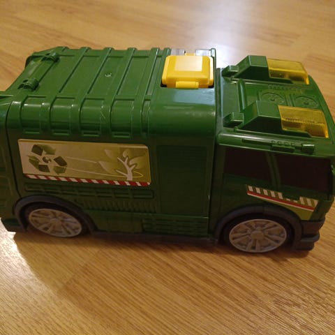 Leikki Roska-auto. Toimii muuten eli liikkuu Napista ees ja taaksepäin ainoastaan katon toinen vilkku on pimeänä.