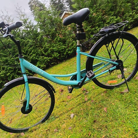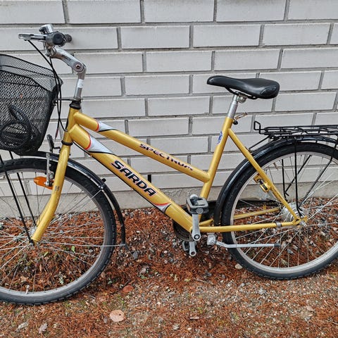 Punainen yksipyöräinen, joka muuutaman vuoden ollut jo käyttämättä. Harrastekäytössä ollut muutamia kertoja ennen harrastuksen lopettamista. Tankoa saa säädettyä pituuden mukaan. Pyörän kumi hyvässä kunnossa.