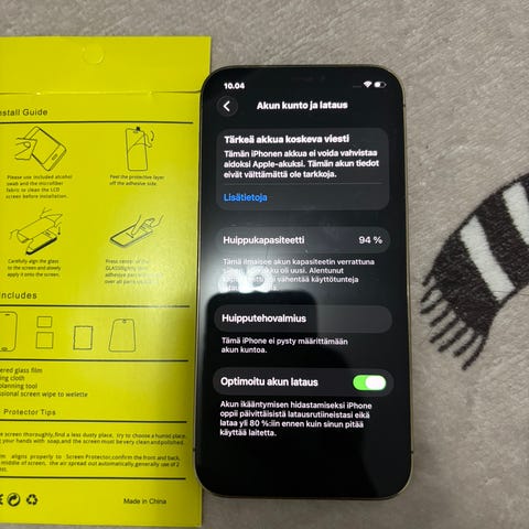Hyväkuntoinen iPhone 12 Pro 256GB (Gold). Puhelinta on käytetty varovasti ja aina suojakuoressa. Siitä huolimatta reunoissa on pieniä käytön jälkiä/naarmuja. (Katso kuva) Akun kunto on 77 %. Puhelinta ei ole koskaan korjattu ja se on ostettu uutena. Mukaan tulee alkuperäinen latauskaapeli.