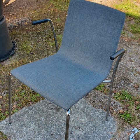 2 tuolia. Valkoinen istuinosa ja jalat metallia. Harmaat istuintyynyt. Käytetyt, yleisilme siisti.