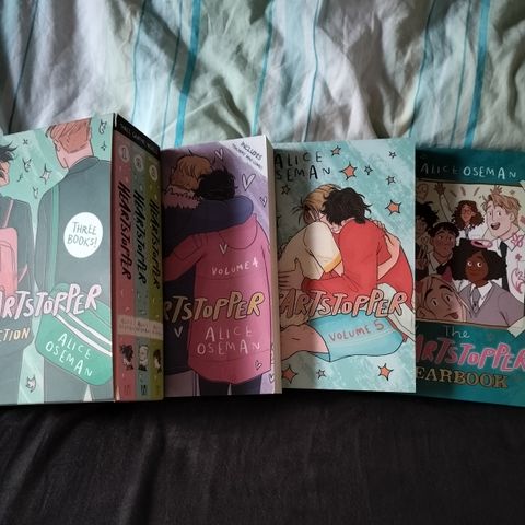 Heartstopper 1-4.. Hyvässä kunnossa. Näkyy että on vähän vanhoja (noin 2v) eli vähän tummunut sivujen värit mutta muuten aivan ehjiä ja niinkuin uusia paitsi Heartstopper 1 on pieni taitos edessä... Englannin kielisiä siis..