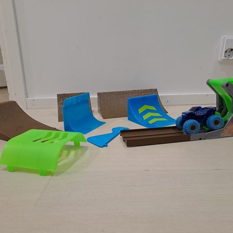Myydään Monster Jam autopaketti, johon kuuluvat Grave Digger ja El Toro Loco autot sekä kuvissa näkyvä pakkauksen sisältö. Mukana tulee myös Mattel Hot Wheels Monster Truck auto ja isompi hyppyri. Autot pituudeltaan noin 9 cm. Siistit ja hyväkuntoiset. Hinta yhteensä 4 €.