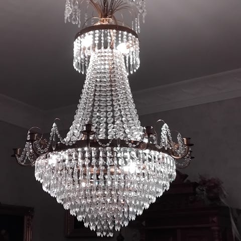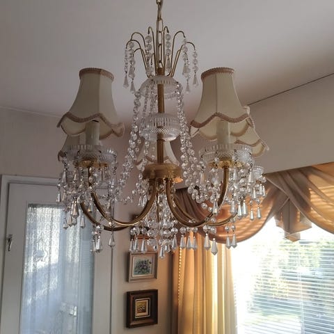 Upea kristallikruunu.Toimiva lamppu, vaihdettu uudet johdot.