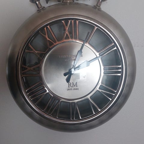 Riviera Maison pöytäkello. Kellotaulun koko 20,5 cm. Koko kellon korkeus 31,5 cm.