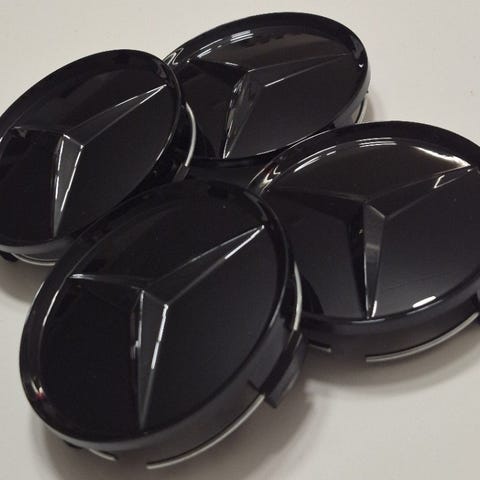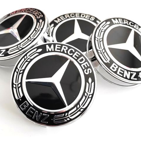 Mercedes-Benz vannekeskiöt 75mm, 4kpl, kokomustat (satiini/matta). Uudet.