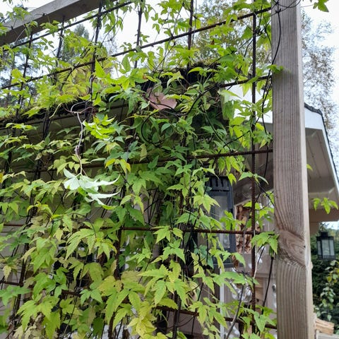 Myydään metallinen köynnöstuki johon tuunattu päälle juuttinarua.
