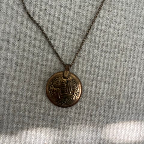 Korkeus 11cm. En tiedä kuuluuko ketju tähän oikeasti.