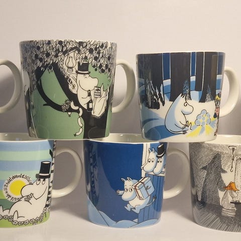 Arabia, talviaiheiset Muumi-mukit 5 kpl, eri kuoseja
