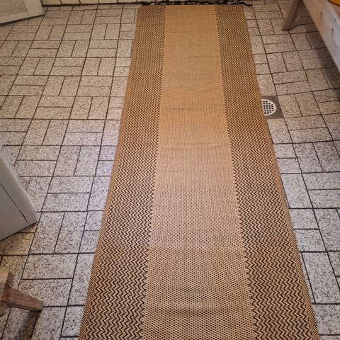 Ostetaan vaal.ruskea/ beige, ruskeat, punertavat tai moniväriset käytävämatot. 2 kpl, saman pituiset 80-120cm x 350-500 cm. Paksuus saa olla n.1cm verran.