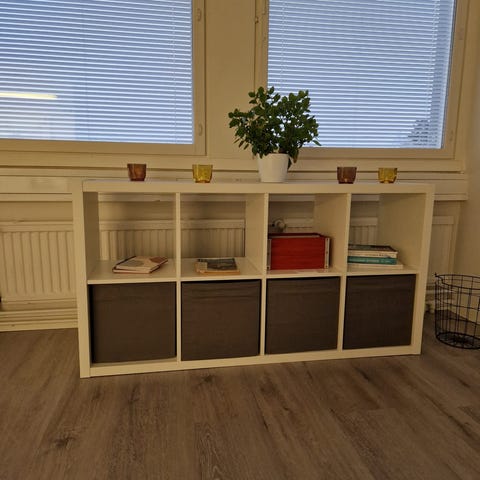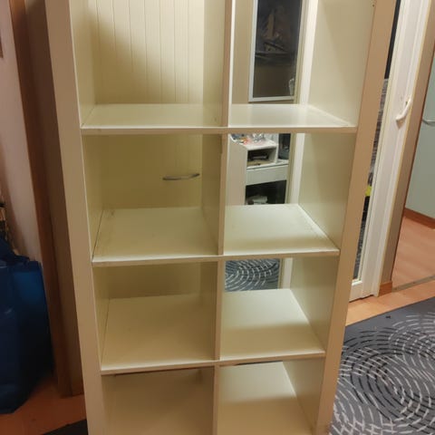 Hyväkuntoinen ikea kallax hylly. Valkoinen pohjassa tassut.