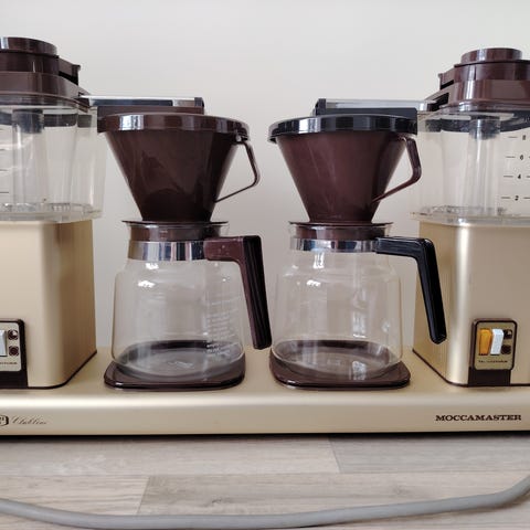 Siisti ja moitteeton tuplakeitin/ Moccamaster. Säännöllisesti puhdistettu. Suodatinpussien kannet puuttuvat.