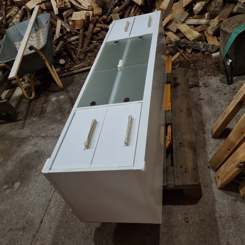 Hyväkuntoinen ruskea ON24 tv-taso. Poikkeuksellisen leveä 208,5 cm. Sopii hyvin sekä tv että kaiuttimet. Keskiosaan saa vielä kolmannen hyllyn mukaan. Taustassa luonnollisesti reikä kaapeleille