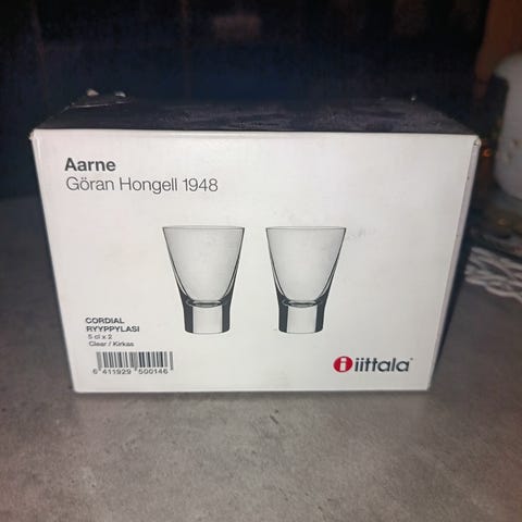 Iittala Niva neljä snapsilasia ja yksi isompi.
