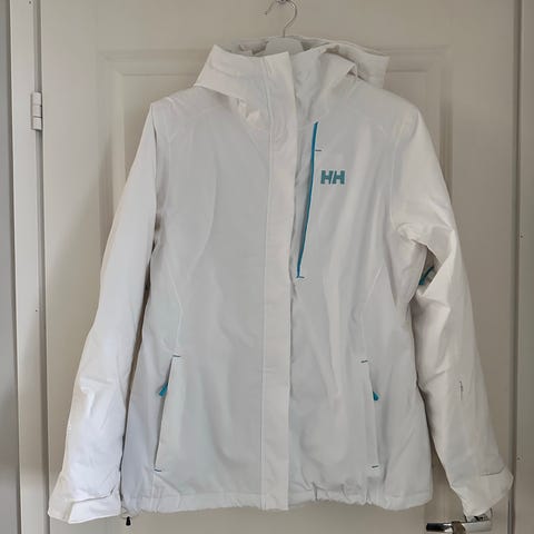 Helly Hansen metsänvihreä laskettelutakki. Sisäosan irroitettava lumilukko ja hupun karvareunus puuttuvat. Käytönjälkiä havaittavissa. Kokomerkintä kulunut pois, mutta muistaakseni kokoa M. Vetoketjutaskut sivuilla ja myös kätevästi hihassa.