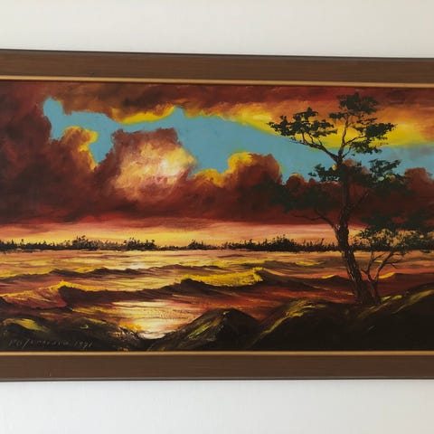 Junturan öljyvärityö “Hirvihaukku” kankaalle, mitat kehyksineen 25*23 (kork.) cm, maalauksen koko 14*12 cm..