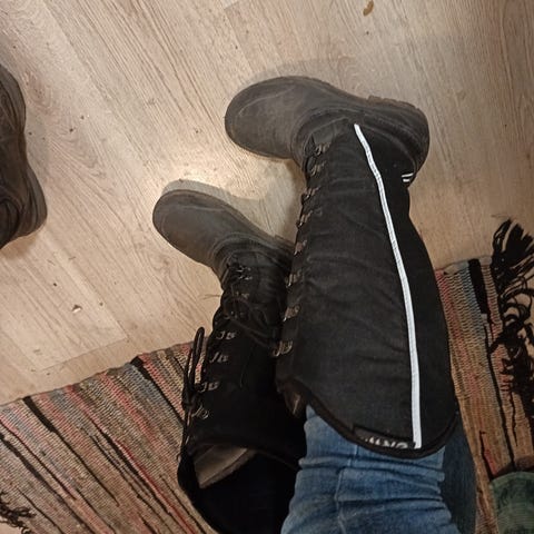 Mustat naisten rieker saappaat, joissa on vetoketju sivussa. Saappaat ovat pitkävartiset ja sopivat erilaisiin käyttötarkoituksiin.