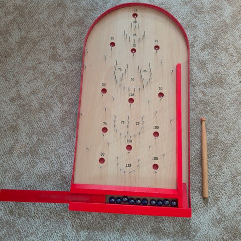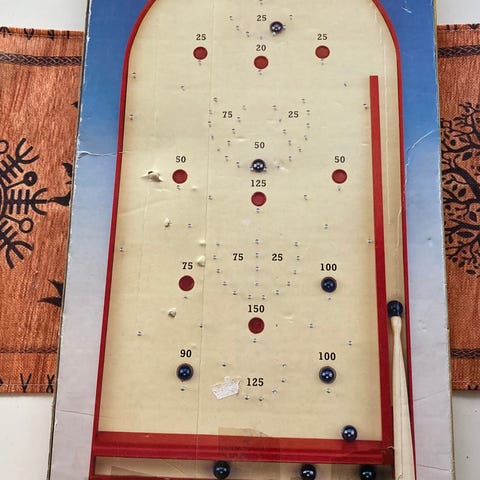 Myydään hyväkuntoinen fortuna-kuulapeli. Peli on valmis käyttöön - siniset lasikuulat, työntökeppi sekä itse pelilaudan kuulapesät, pistemerkinnät ja naulat ovat kaikki tallella.
