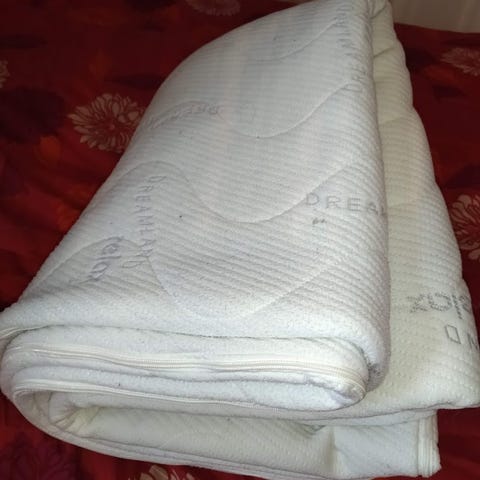 Hyväkuntoinen petauspatjan päällinen. Pieni tahra löytyy
