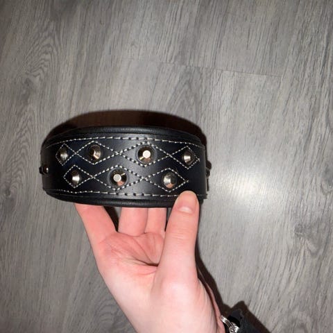 Koiran puolikiristävä musta nahkapanta. Koko 20-33cm. Hyväkuntoinen.