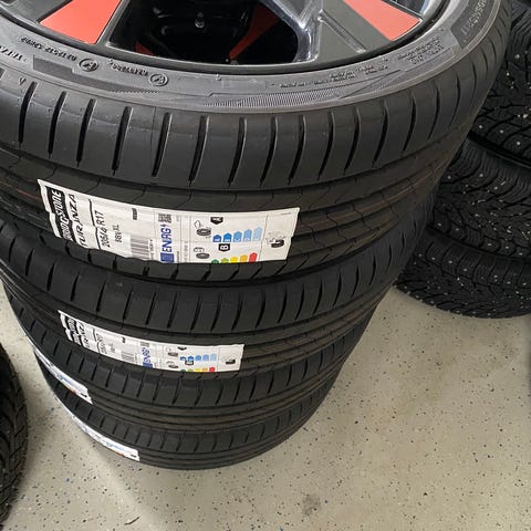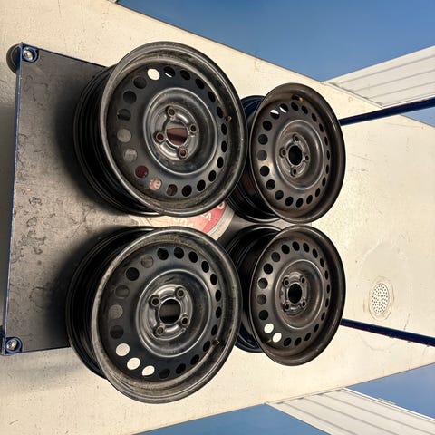 Uudet peltivanteet kapseleilla. Vanteissa paineanturit. Renkaat vanhat. Ei näy kuvassa