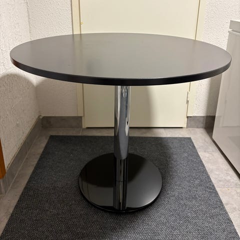 Myydään Jyskin Jegind pyöreä tuokapöytä. Pöytälevy tammi, jalat mustat. Halkaisija 105cm. Naarmu pöytälevyssä.