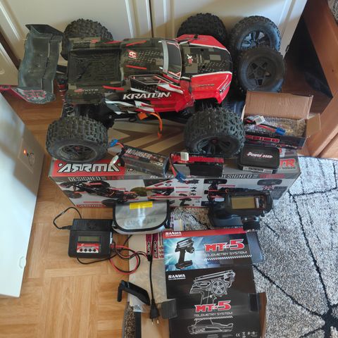 2kpl 4s akkuja ettei ajot heti lopu kesken ja perus spektre kauko-ohjain tehosäädöillä mukaan. Mahdollisuus ostaa auto myös sinimustalla kopalla, se ei ole vain niin siisti kuin tämä punainen.