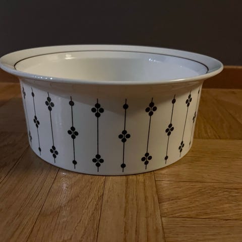 Kartano -sarjan kulhot, kunto erinomainen, ainoastaan pohjien reunoilla pientä kulumaa, muita naarmuja tai jälkiä en löydä. Pienemmän kulhon kuviointi näyttäytyy haaleampana ja epätarkempana ns. "levinneenä", ehkäpä poikkeama tuotannossa? Olleet vähällä käytöllä.