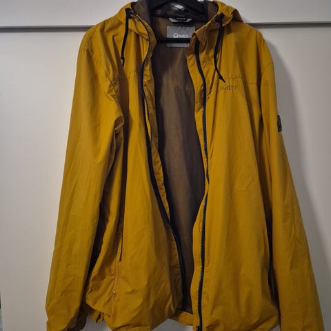 2 vetoketjullista taskua, povitasku, huppu kiristysnauhoilla, hihansuissa tarranauhakiristys